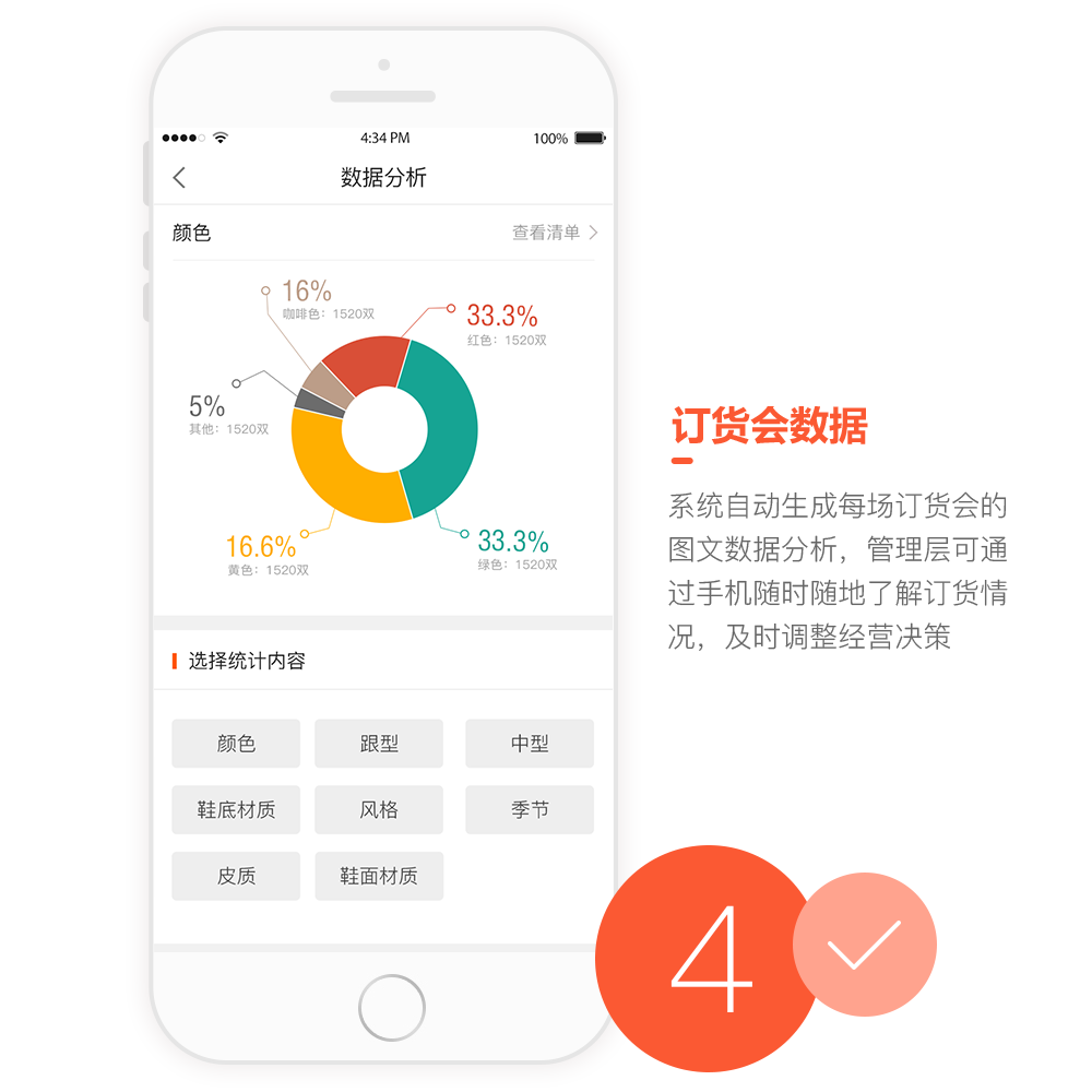 1、成都知名女鞋品牌厂商采用该系统,在其2017秋冬新品订货会上,实现单场20万笔订单,超1000万的销量的辉煌成绩。