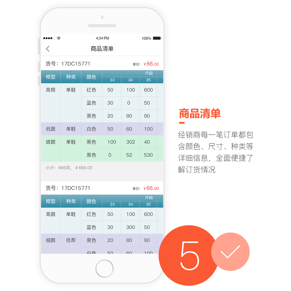 专注鞋类会销的B2B订购平台, 经销商在新品订货会现场可直接通过APP扫码查询产品详情与价格,完成现场采购与预订,也可以通过平台远程下单补货,有效的提高了经销商的采购效率和市场反应速度,加快了厂家的库存流转和资金回流速度,形成从订单数据反馈,到按需生产,再到新品改进的闭环流程,真正实现对经销商的数据化管理和以市场需求为导向的经营模式